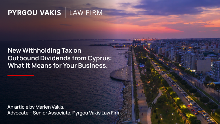 New Withholding Tax on Outbound Dividends from Cyprus: What It Means for Your Business.Effective as of April 16, 2025, Cyprus has implemented a 17% withholding tax (WHT) on...